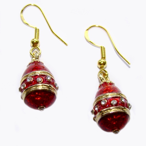 Boucles d'oreille en forme d'oeuf en émail à froid de couleur rouge