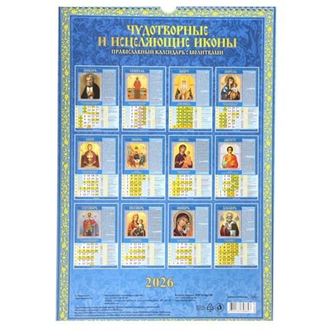 Calendrier orthodoxe 2026 - 12 icônes miraculeuses et guérissantes
