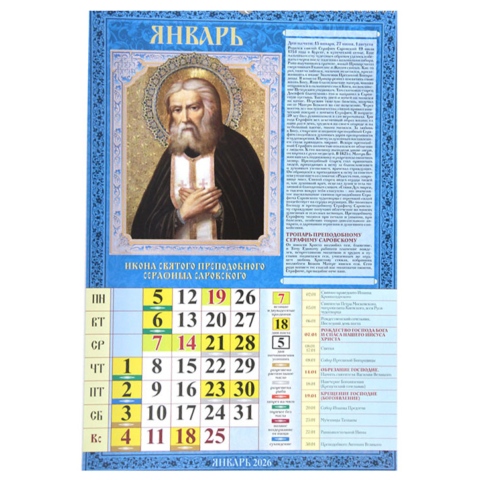 Pour chaque mois de l'année 2026, le calendrier icones russe orthodoxe présente :