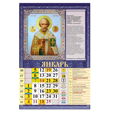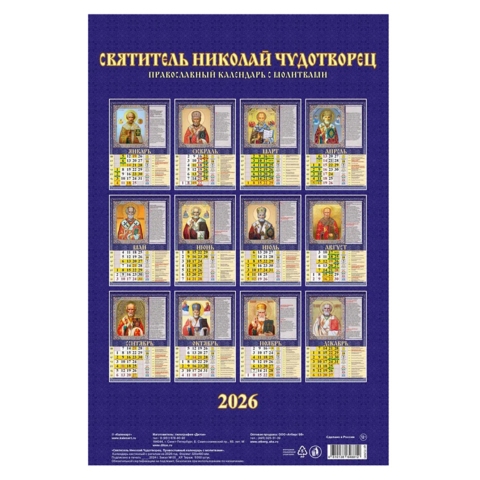 Calendrier russe 2026 - Icônes Saint Nicolas le Thaumaturge