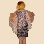 C'est un très beau châle marron clair tricoté à la main avec un entrelacement d'un fil de duvet et d'un fil de soie. C'est une matière unique, car malgré son volume important, cette pièce douce, légère et chaude, peut entièrement passer au travers une alliance. Cet chale en laine marron clair peut être portée de mille et une façons : repliée, comme une écharpe chaude ou, dépliée, comme un châle. Châle peut se marier aussi bien avec un jean ou un tailleur qu'avec un manteau ou même juste sur la peau que ce soit en été ou en hiver.