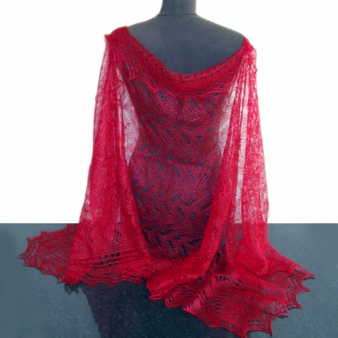 Étole rouge framboise - étole russe tricotée à la main