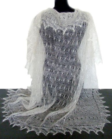 Chale en laine bleu tricoté main a Orenbourg Russie