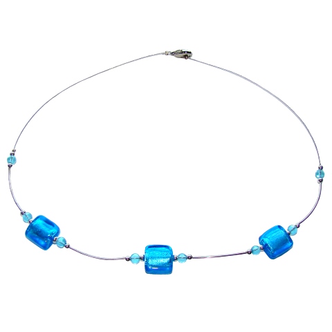 Magnifique collier ras cou Murano est composé de Perles bleu avec feuille d'argent