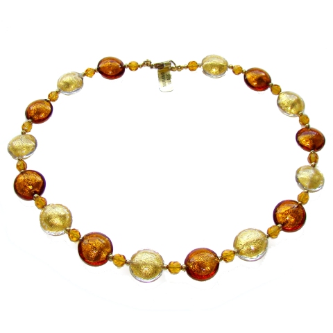 est composé de Perles écrasées couleur ambre avec feuille d'or