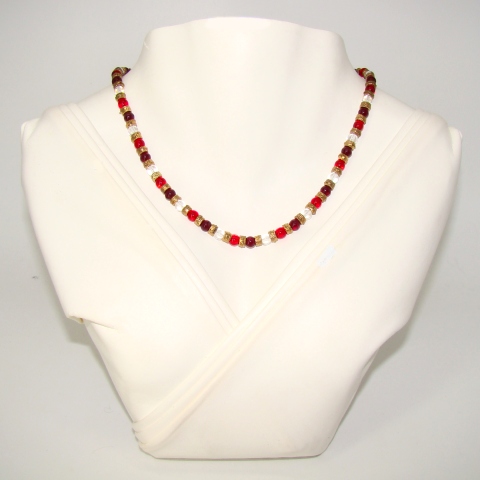 Élégant Collier en véritable verre de Murano de Venise de couleur rouge et blanc. Chaque Collier Murano c'est une œuvre d'art unique réalisée à la main.