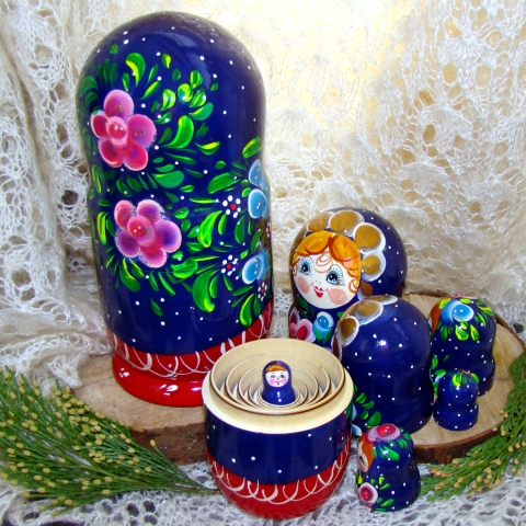 La poupée russe ou Matriochka est un signe de bonheur dans la famille, symbolise la mère avec ses enfants. Ce souvenir, fait à la main en bois est un cadeau inoubliable!