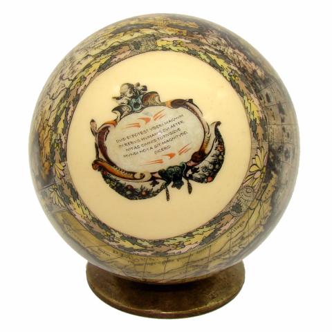 Oeuf d'autruche décoré carte du monde du 17 siècle