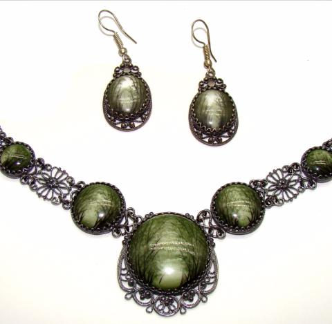 Parure en email Floraison - Boucles d'oreilles et Collier
