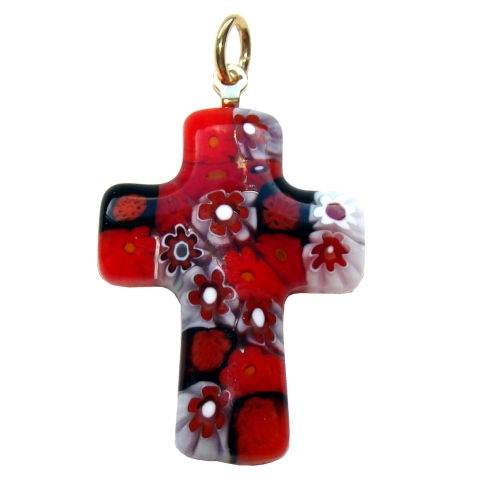 Adorable pendentif Croix en Verre de Murano Millefiori, bijou de création artisanale, réalisé et monté à la main