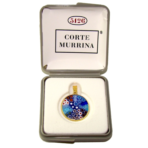 Pendentif en verre Murano Millefiori authentique, montage argent 925 plaqué or, bijou de création artisanale, réalisé et monté à la main