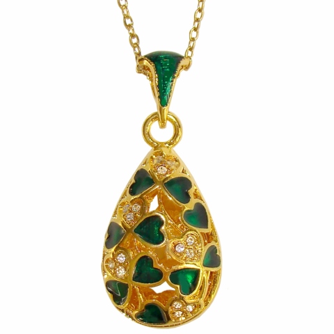 Pendentifs-oeufs de Pâques. De petite taille et pas aussi grandioses que les œufs de Pâques impériaux Faberge, ils étaient néanmoins des cadeaux de Pâques très désirables et appropriés, et, de plus, ils pouvaient être portés - individuellement ou plusieurs à la fois sous forme de collier. Ces pendentifs oeufs sont fabriqués avec la même originalité, inventivité et savoir-faire que leurs "grands frères". Nous vous invitons à découvrir notre collection de bijoux raffinés – les oeufs pendentifs de la tradition de grand joaillier des Tsars, Karl Fabergé... L'histoire raconte que l'idée de créer un pendentif en forme d'oeuf vient de l'enfance de la Tsarine russe. Petite fille elle avait été émerveiller par un oeuf pendentif que possédait sa tante. Les bijoux Fabergé ont leur propre style et des solutions de conception inhabituelles. Ornements de marque Fabergé sont comparables à de véritables oeuvres d'art. Ils sont multiples et enchanteur, fascinant et attirer l'oeil, réalisée sous la forme d'oeufs symboliques ou poupées, qui sont cachés à l'intérieur: un coeur, un ange, un ours, un chat, un poulet, un chien, une pomme, un levraut, lions et plus encore.. Pendentif oeuf Faberge - Cadeau Original rêvé pour la femme qui vous est chère !