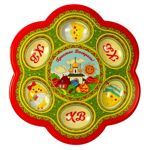Présentoir de Pâques ХВ ( Christ est ressuscité en russe ) orné d'image d'une église russe, avec de petites alvéoles pour 6 œufs. Avec ce présentoir coloré, vous pourrez facilement décorer votre table de Pâques !