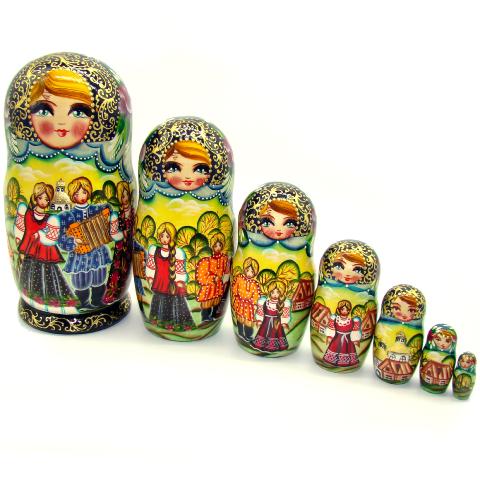 La MATRIOCHKA est un des souvenirs russes le plus connu et aimé de tous. La première Matriochka est apparue en Russie à la fin de XIX siècle, néanmoins elle a gagné une reconnaissance extraordinaire en tant qu'image universelle de la Russie, symbole de l'art national russe. Selon la légende, la première Matriochka est apparue au Japon sur l'ile de Honsju. Elle représentait Fukurumy, un moine bouddhiste. A l'intérieur de la Poupée, il y en avait plusieurs autres. Mais les japonais insistent sur le fait que c'est un ermite russe qui l'a fabriquée. Les russes appellent cette poupée Matriochka. A Russie, avant la révolution de 1917 le prénom Matriona, Matriocha est le plus répandu. Il vient du mot latin « mater » signifiant la mère. Ce prénom s'associait à la mère de famille nombreuse possédant une bonne santé et un corps corpulent. Jusqu'à présent la Matriochka reste le symbole de la maternité, de la fertilité puisque la poupée avec sa famille nombreuse exprime parfaitement le symbole le plus ancien de la culture humaine. La première Poupée Russe a été fabriquée par Vassili Zvezdochkin et répandue par Serguey Maljutin. C'était une Poupée de huit pièces. La première Poupée Russe était de couleur noire et représentait la mère, à l'intérieur de la mère était la fille, et à l'intérieur de la fille était le fils, ainsi de suite. Toutes les figurines se distinguaient, mais la dernière, huitième, représentait toujours un bébé langé. En général, les Poupees Russes sont fabriquées en bois de tilleul, de bouleau, ou d'aune. En 1900 la Matriochka Russe participe a l'Exposition universelle à Paris, où elle reçois une médaille et la reconnaissance mondiale ! Découvrez notre collection Poupée Russe pour acheter un souvenir original russe ou Enrichissez votre Collection Matriochka.